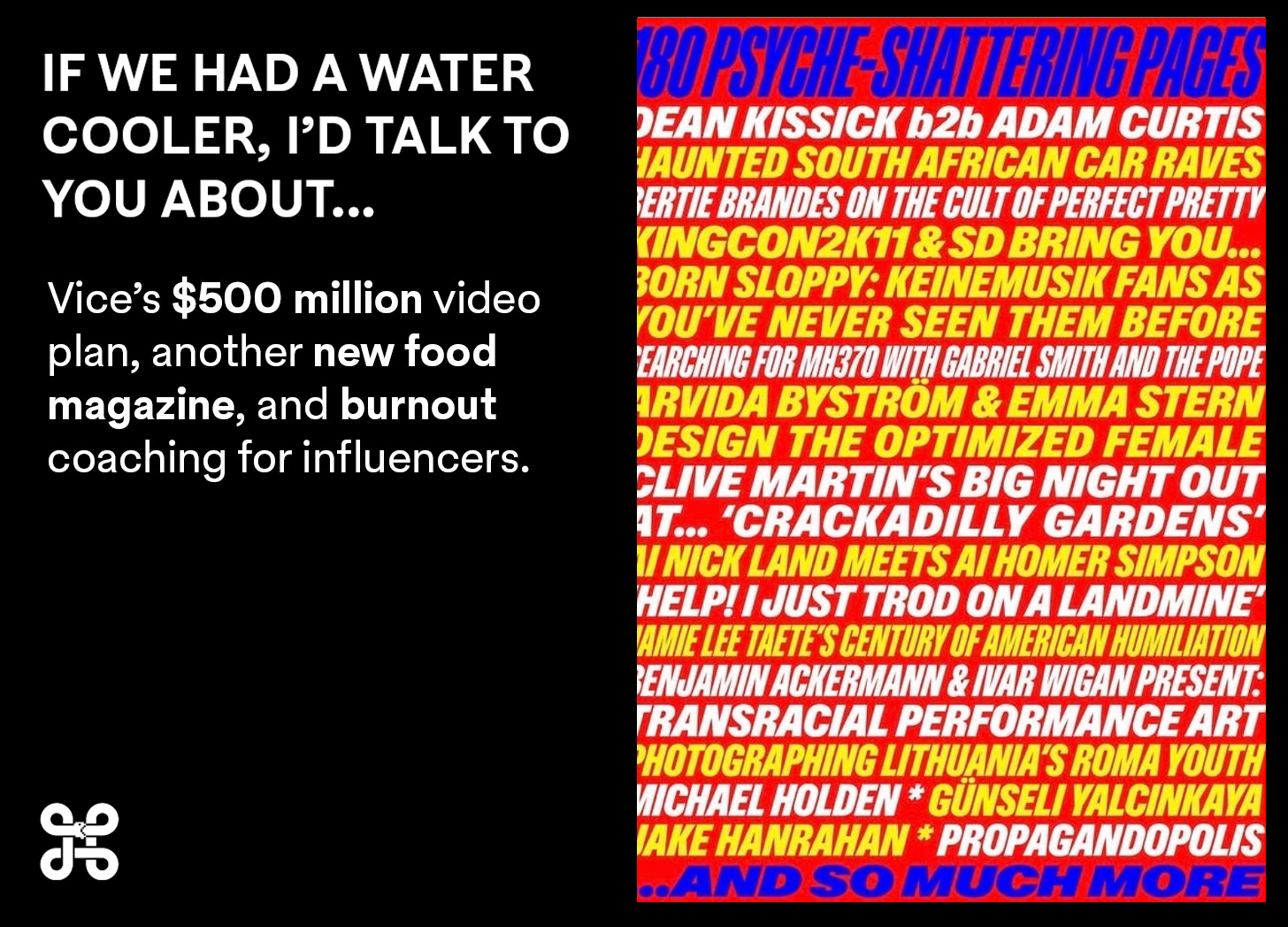 Today’s letter includes: A play about the death of downtown New York, lip filler is giving you an accent, a new menswear newsletter by Magasin alum Louis Cheslaw, and Vice is attempting to rebuild their empire.