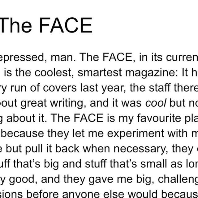 The Face magazine is shuttering. Sad news. I really fell in love with their work, especially the investment in young photographers. Shaad wrote a great post about why The Face was the coolest magazine in the world.
