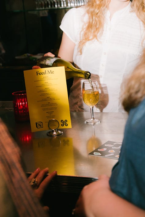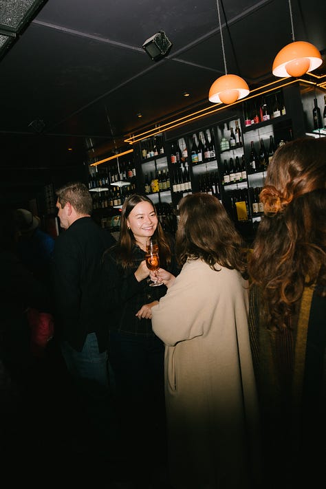 Hello everyone. Around 200 Feed Me readers came to Bar Part Time in San Francisco last night. There were ten SF Standard employees, two Airbnb employees, one guy who worked at Sequoia, Jasmine Sun, at least four women named Emily, one guy who worked at The New York Times, randa and Christina Loff from Substack, Broke-Ass Stuart, and Dylan Abruscato. Can the woman in the big fur hat who I spoke to at the end of the night please shoot me an email or DM? Thank you to Lilli Sherman for helping it all come together and Notion for partnering with me on the event.
