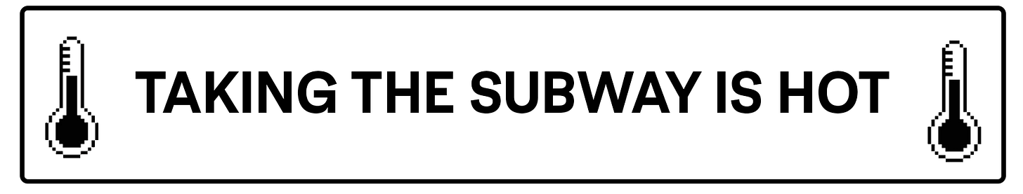 I called Jack this morning to find out more about what he’s trying to do with this whole project, and how he thinks about building a cooler, cleaner subway system. It’s refreshing to speak to someone who is building an online presence with a mission to educate and change. After speaking with Jack, it sounds like it might even be possible through the presentation of data. I also just think collecting data about something other than ourselves (I’m not talking about Oura rings) is cool and more of us should be curious about how soil pH affects hydrangea color, or the correlation between font choice and book sales.