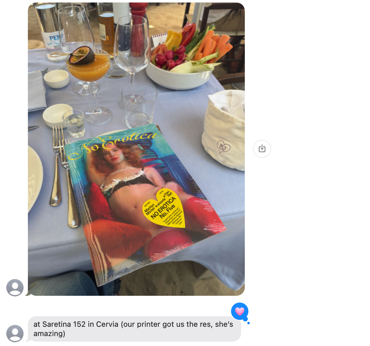 The most public-facing project they work on is a limited-edition publication called NO EROTICA. I spoke to Alexander Tsebelis, co-founder of No Agency, this week. He answered my questions via voice note because he was driving through Faenza, a city south of Bologna, where the agency’s printer is located. The new issue will ship later this month.