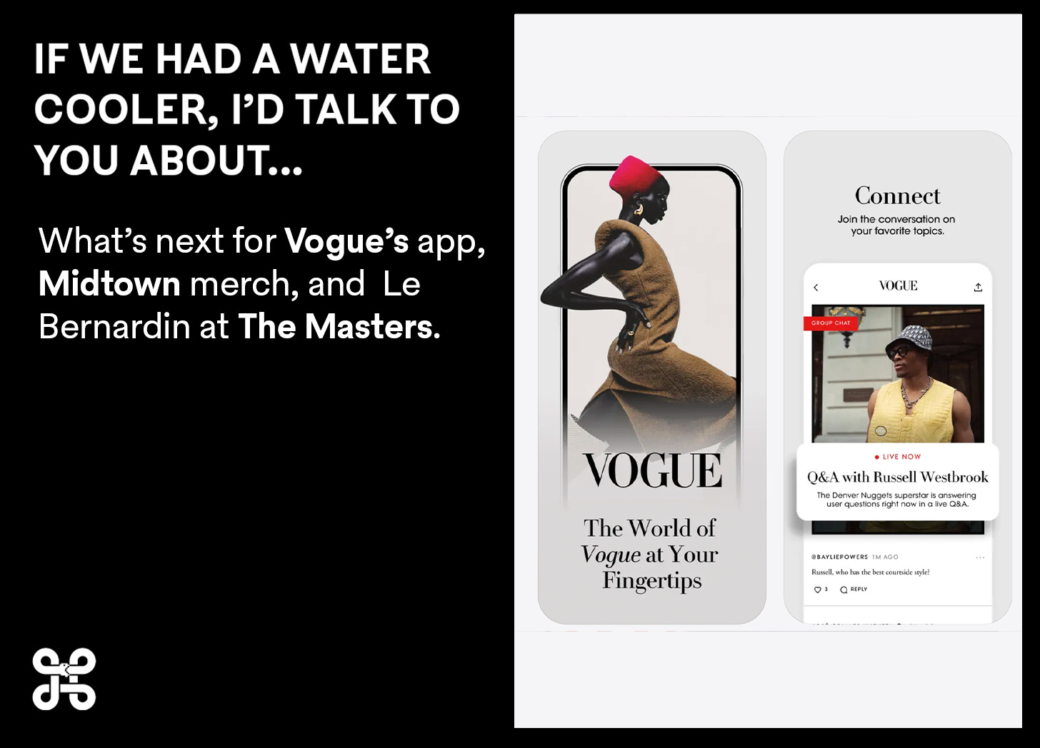 Today’s letter includes: The New York restaurant that inspired the Champions Dinner menu at The Masters, Vogue’s attempt to revitalize their app, and William Gass’s The Tunnel could be one of the It Books of the summer.
