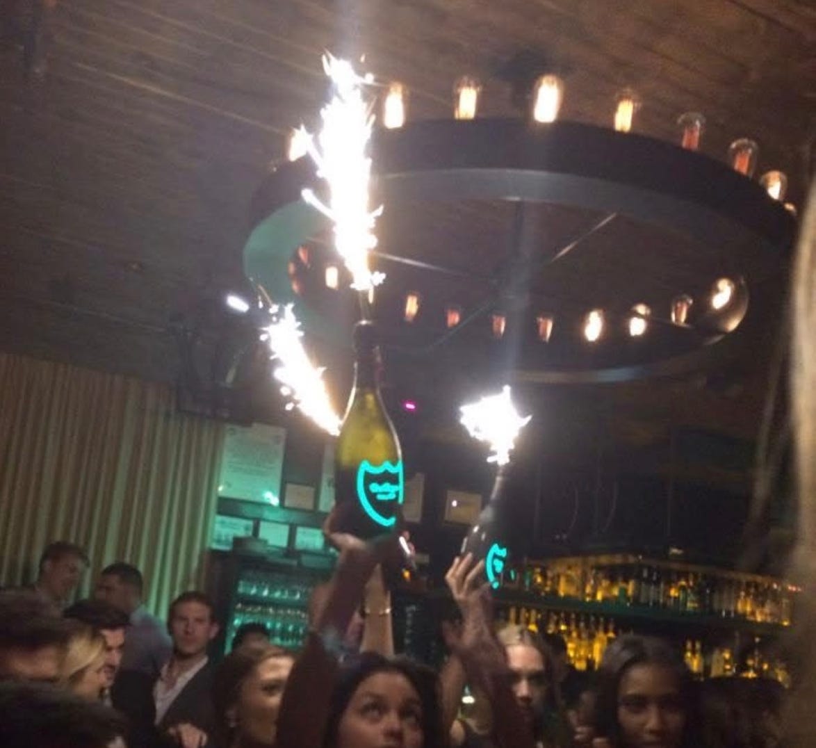 SAMANTHA: The guys were basically going every weekend at that point and had access to their parents’ credit cards. So they’d buy $3,000 tables every weekend. Bottles, sparklers, the whole thing. And so that’s how they became very known in the clubbing scene.