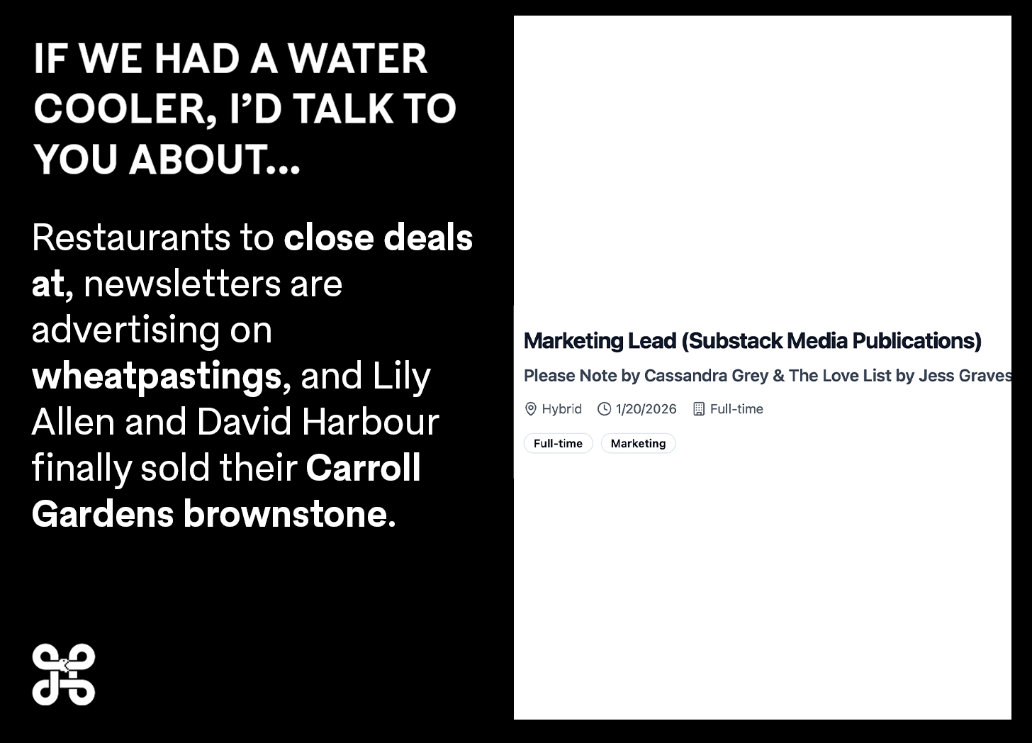 Today’s letter includes: 2026 might be the year we see newsletters advertised on the subway, Lily Allen and David Harbour sold their Carroll Gardens brownstone, a tip about the oldest restaurant in Los Angeles getting a new owner, and a poll about a new newsletter that aggregates newsletters.