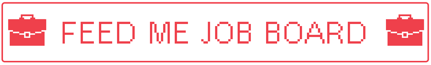 The Feed Me job board lives off Substack (and you can sponsor it). It’s better than LinkedIn because the jobs are submitted by Feed Me readers, the site will be updated daily, and I will have approval of what gets listed which means it’s designed for the ambitious.