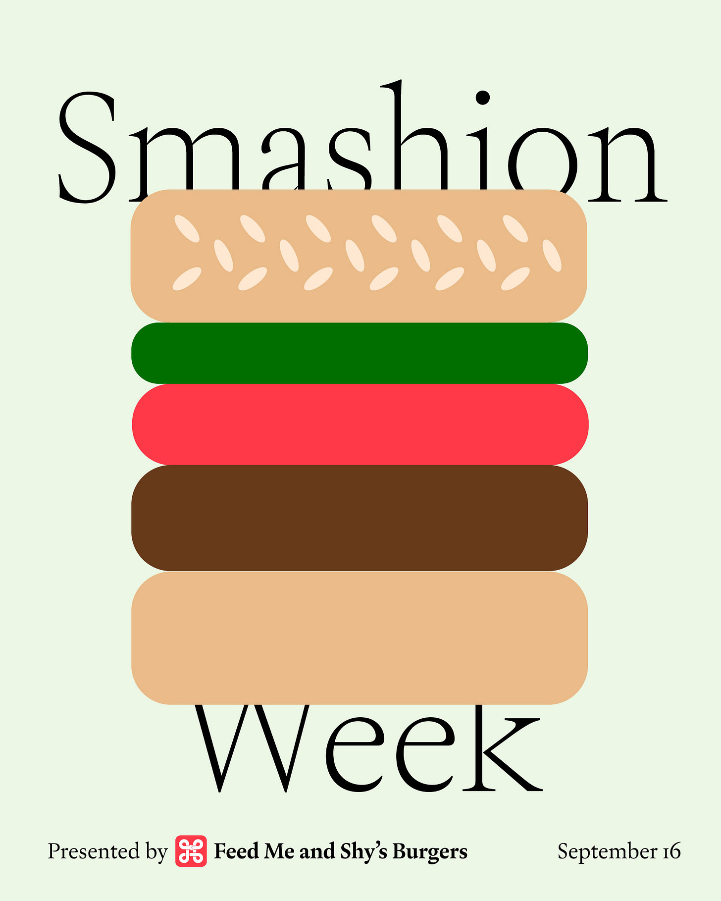 Feed Me is throwing a party with Shy’s Burgers next week on Tuesday, September 16th at Time Again on Canal Street. Every day this week you will be getting a short essay from a writer (or someone who knows how to write) about a burger. We are calling this whole thing… Smashion Week.