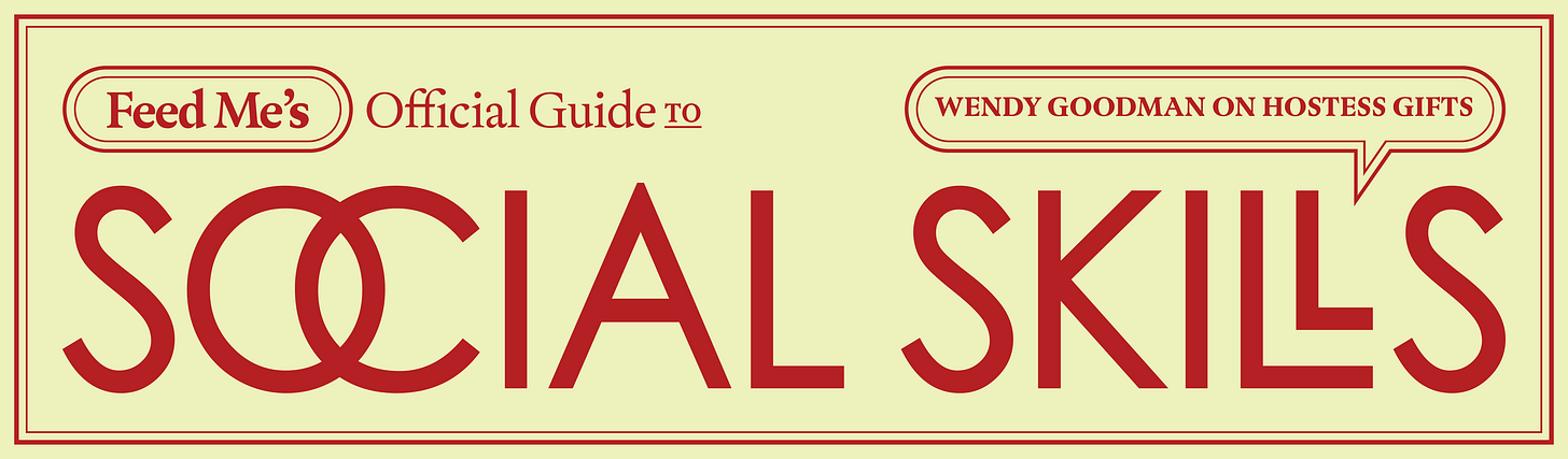 Social Skills is a monthlong Feed Me series to help you survive the most social season of the year. Today, Wendy Goodman, Design Editor of New York Magazine, explains why you probably don’t need to worry about a hostess gift this holiday season.