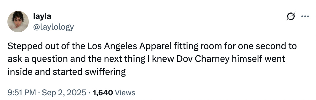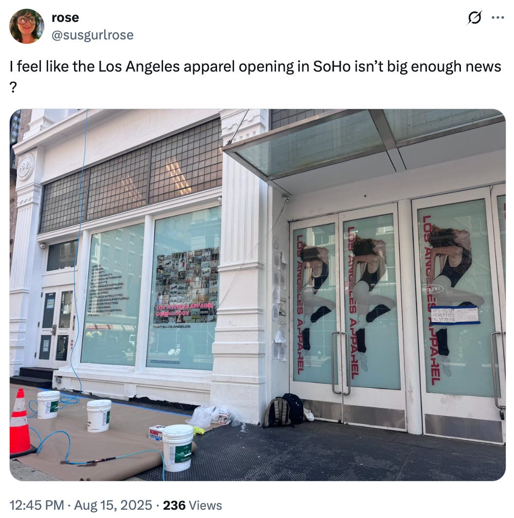 Today’s letter includes: A dispatch from New York’s new Los Angeles Apparel location with special reporting from Lauren Servideo, the Carpathia to NeueHouse’s Titanic, slushies are back in Dimes Square, and The RealReal stopped publishing on Substack in June…
