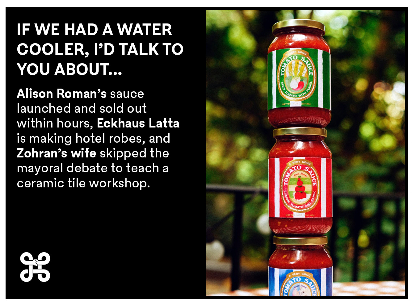 I asked Alison Roman this morning how it feels that her newly-launched sauce (her first foray into CPG) sold out within hours of launching. “We underestimated the enthusiasm for this sauce and sold out way quicker than expected. This is obviously WONDERFUL, but also frustrating to launch a product and then immediately have to tell people they can’t buy it. Learning curve! But, we’re already working on it and everything should be restocked within a few weeks,” she said. “The coolest part, to me, is that we nearly sold out before I even posted a single story to Instagram— the power of newsletters!” I want to talk about this more but…… she’s our Guest Lecture next week, so I’ll wait.