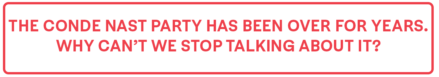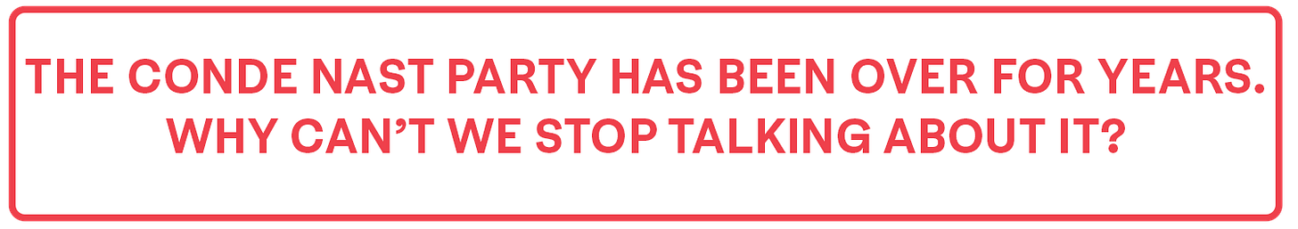 Because if you were a middle class kid from an unremarkable American suburb, working at Conde Nast was a path to a semi-glamorous New York life. It put you closer to the flame. You would know the right people, go to the right places, meet and even collaborate with your heroes. If nothing else, Conde Nast made editing a magazine look like the most fun job in America.