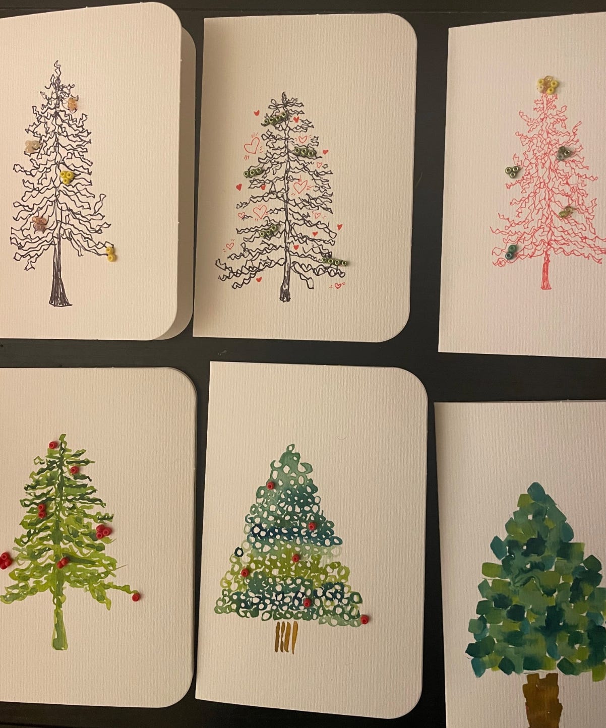 Nobody wanted to go see Zone Of Interest last night so I went alone. I think all movie theaters should have a full coffee and tea menu like Angelika does. It was quite a stunning and haunting movie, I came home and didn’t want to talk to anyone until this morning. If you’re obsessed with scores and weird shots (interior scenes were shot with fixed cameras in hidden locations, which gives it a chilly feeling), you should go see it. When I came home I made these Christmas cards.