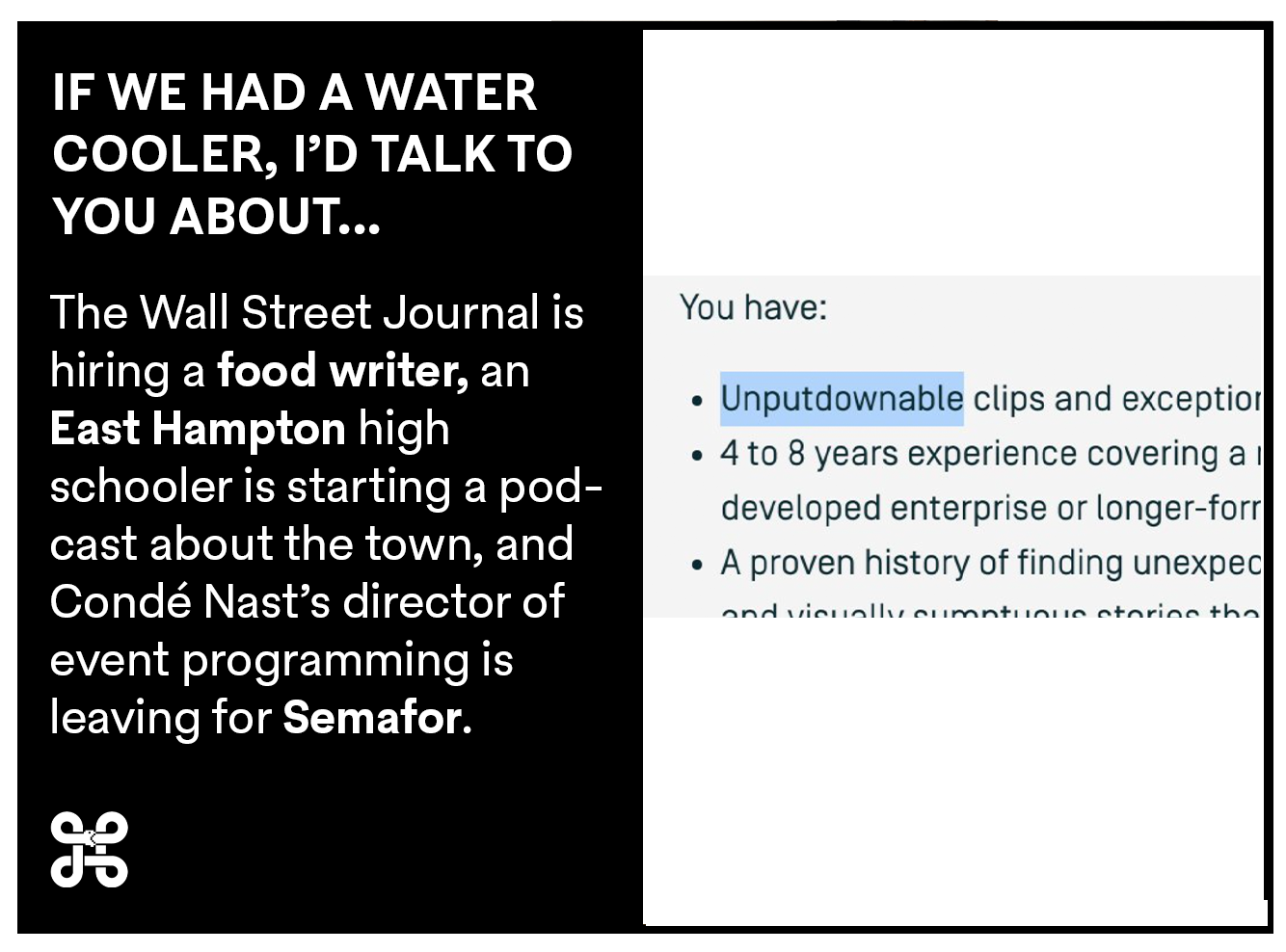 Today’s letter includes: a Hamptons podcast made by a high school student, WSJ is hiring a food and restaurant writer, and the status of Fenty’s Brooklyn store.