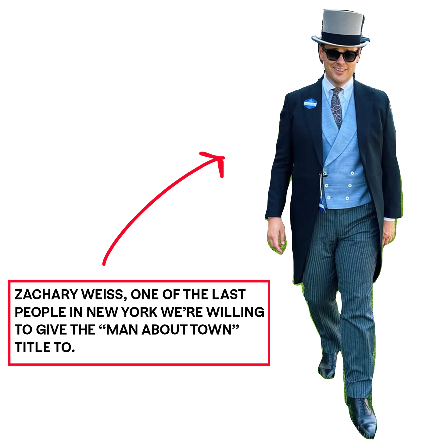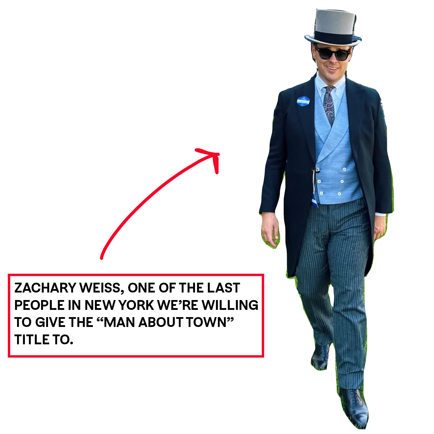 Zachary Weiss, former writer of The New York Observer’s “Shindigger” column turned branding expert behind Outerspace and Nice Laundry, Vogue contributor, and “social fixture” at Manhattan parties according to Air Mail.
