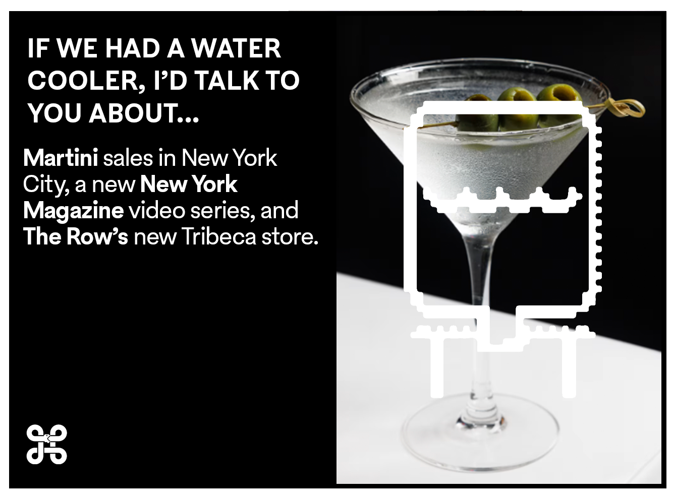 Today’s letter includes: New York Magazine’s new video series, media company Dirt is getting into book publishing, The Row’s new store in Tribeca, and New York bartenders on the state of martini orders this month.