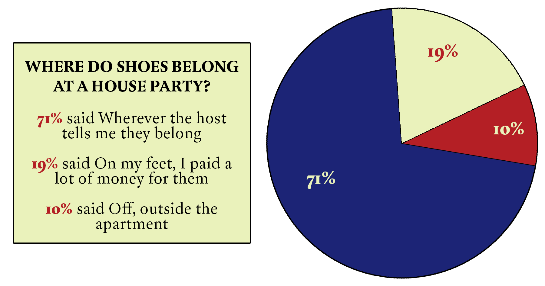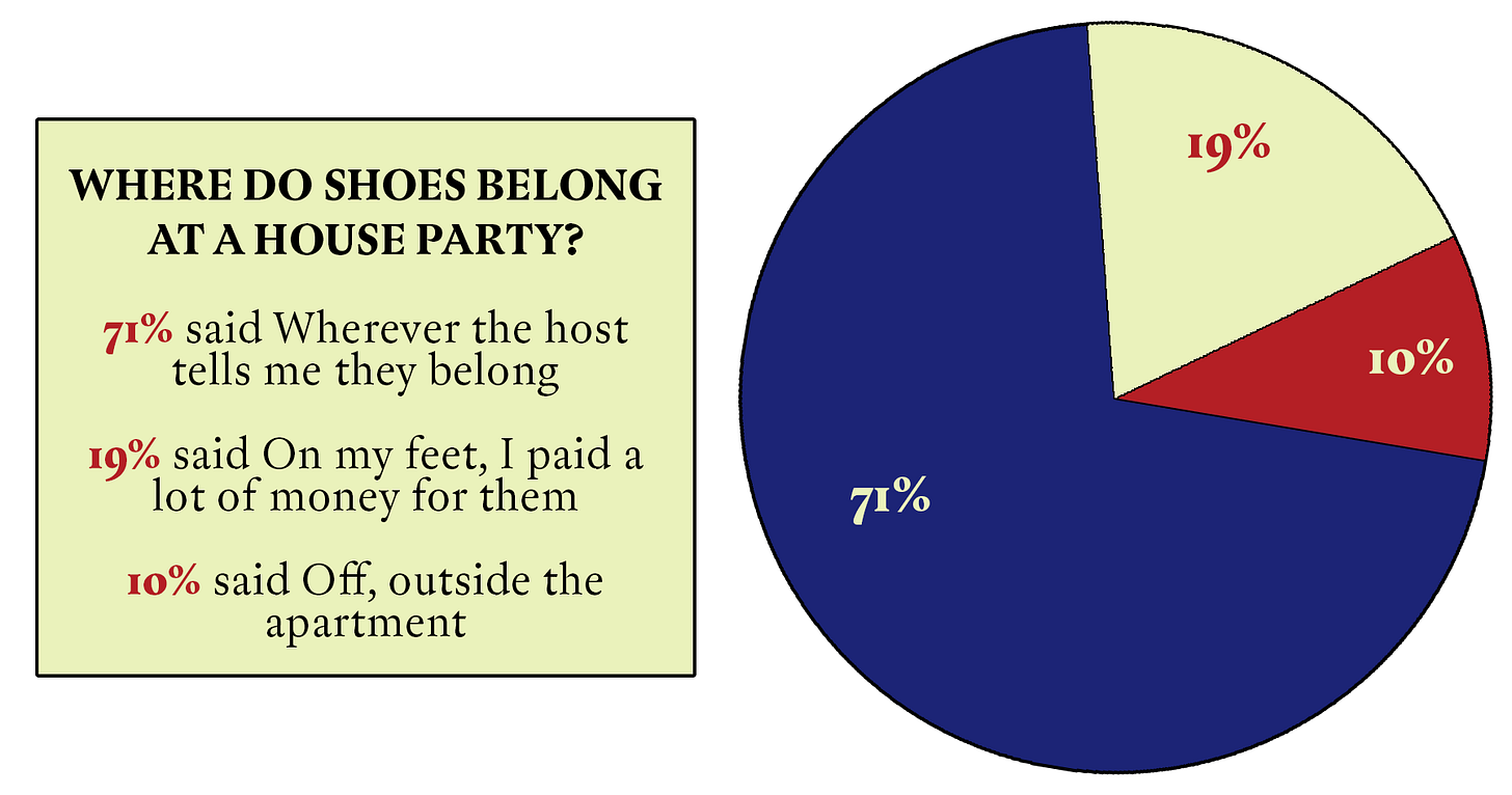 Asked about your most essential party etiquette rules, 22 respondents said Irish exits are the way to go.